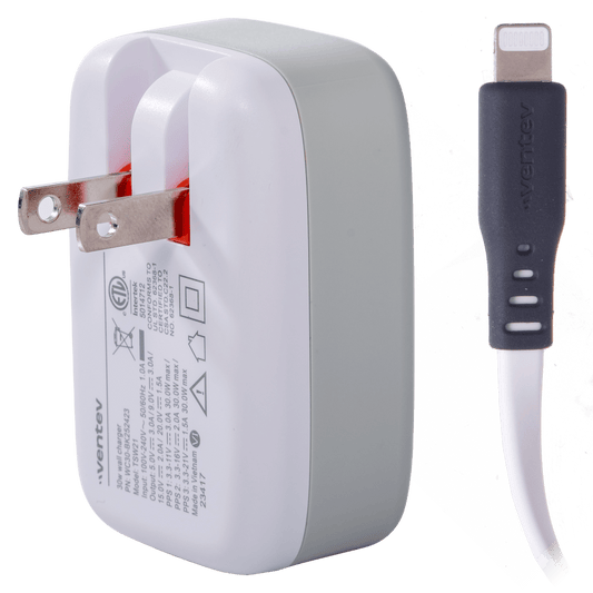 Ventev 30W Wall Charger and USB C to Apple Lightning Cable White by Ventev