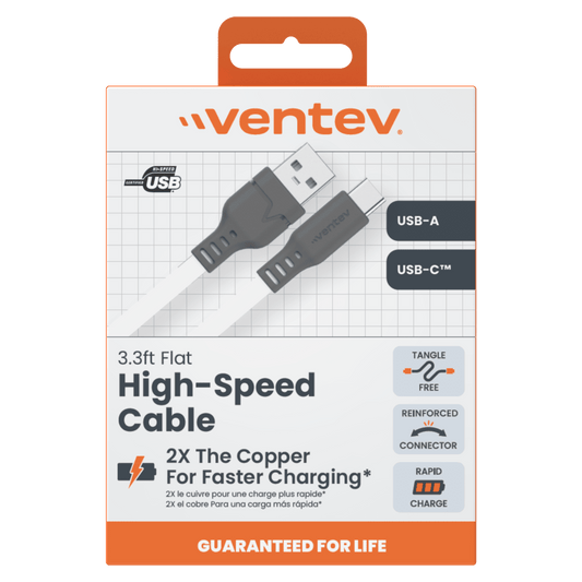 Ventev Chargesync Flat USB A to USB C 3.3ft Gray by Ventev
