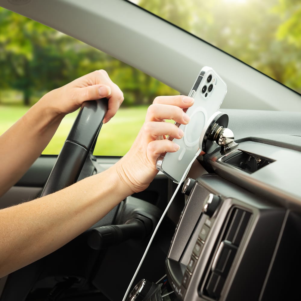 Designed for drivers who value simplicity, the Nite Ize Steelie Orbiter Plus Dash Mount Kit offers a sleek magnetic system built specifically for MagSafe-compatible phones and cases. No clips. No cradles. Just a smooth magnetic lock that holds firm and rotates effortlessly—so your screen is always where you need it.