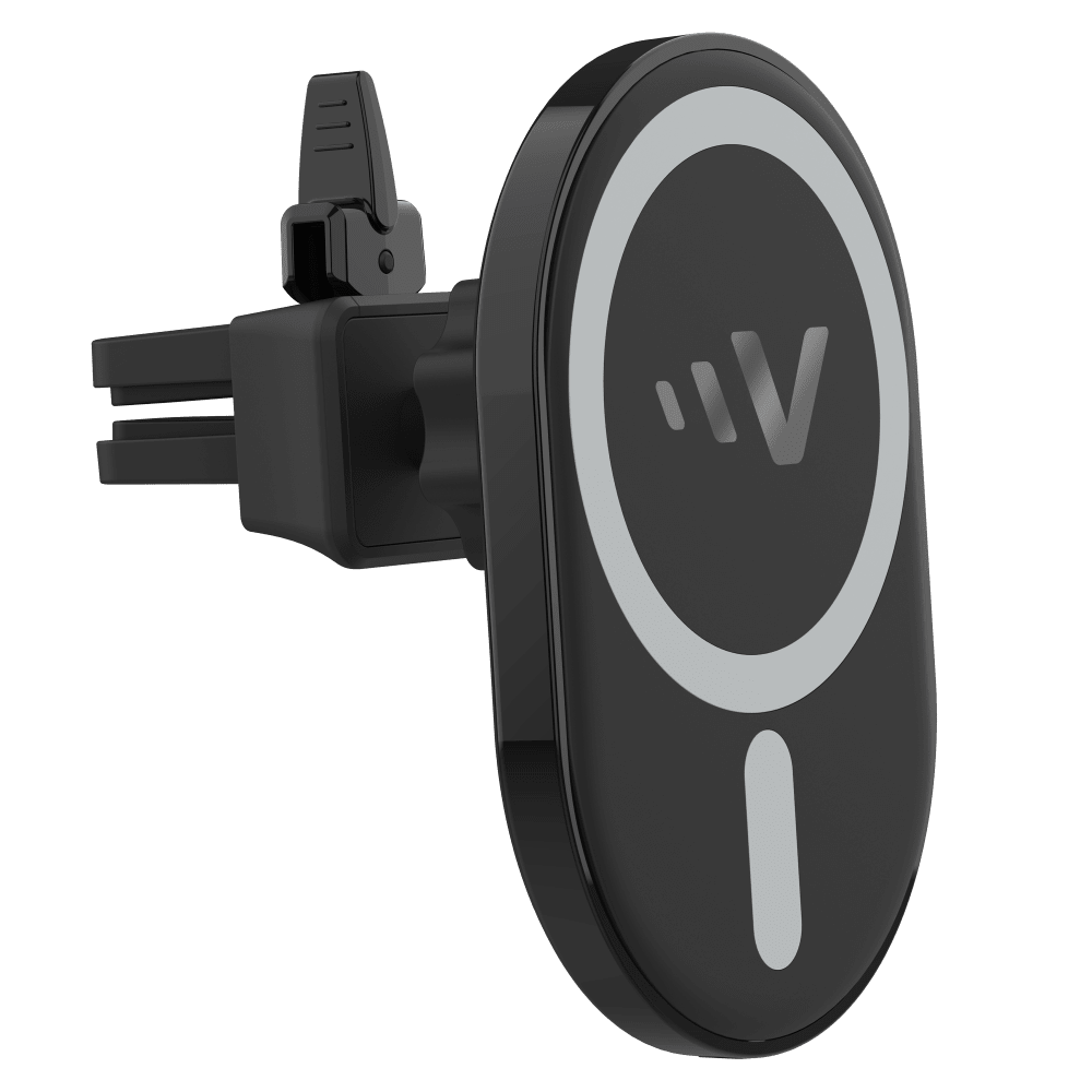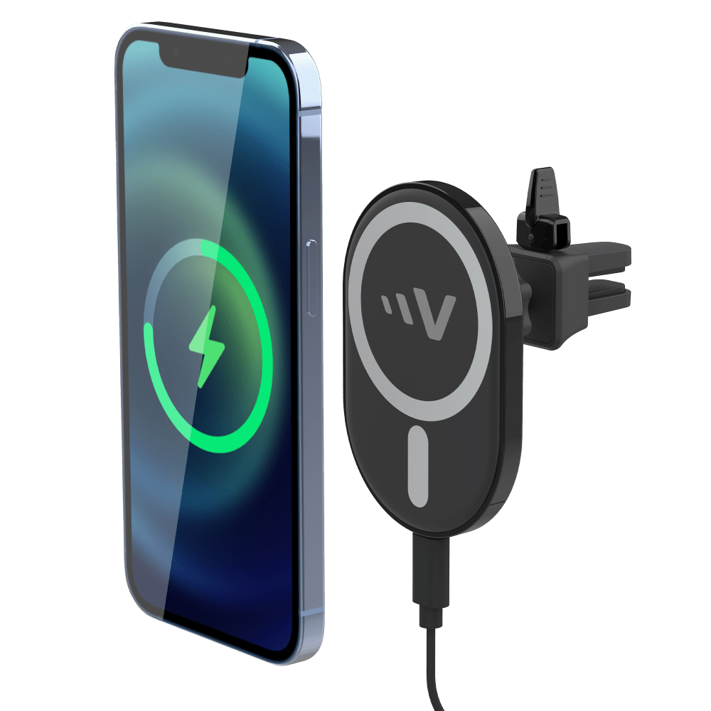 Get ready to charge safely on the road with Ventev's Magnetic Wireless Car Charger Mount. Designed with strong MagSafe compatible magnets, this car charger comes complete with a compatible charger, cable, and wobble-free vent mount. Experience the convenience and reliability of wireless charging while on the go!